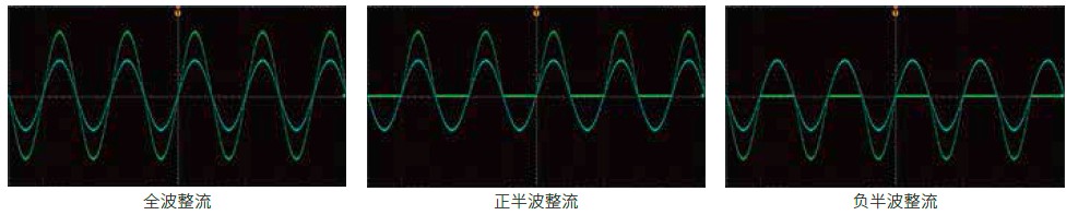 IT8200系列在交流模式下可以开启Rectified整流功能,使负载工作在第一和第三象限,电压和电流始终同向。此时,用户可以选择波形完整性,包括全波,正半波,负半波。