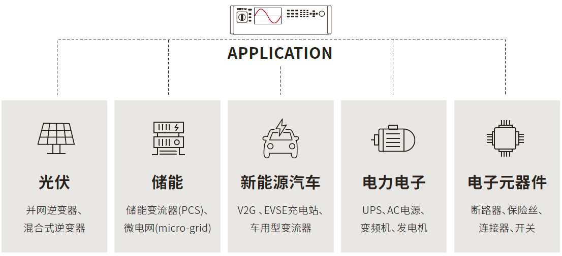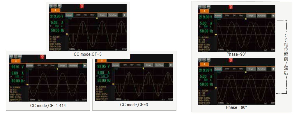 波峰因数表示波形的极端峰值。对于需要纯正弦波的应用,就希望负载端电流波形的CF值为1.414或尽可能接近。但是在实际应用中,负载端电流波形的波峰形态可能会变的很尖,其CF往往大于1.414,此时正弦波的起始点从0度开始正向度数偏移。所以用户需要去校正波形。IT8200的波峰因数(CF) 值可以从 1.414调整到5.0,同时还允许用户从-90 º~90 º设置相移角度,校正结果幅度,使 RMS 值保持不变。从而更为精准的仿真出现场测试条件,以确保被测单元 (UUT) 的可靠性。