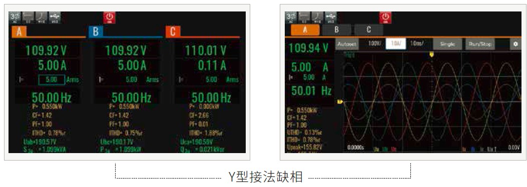 IT8200系列具备非常灵活的操作模式,通过面板菜单可任意选择单相、三相、反相模式。350V的设备在反相模式下,用户可获得最高700V的单相电压,功率保持为原来的2/3。在三相模式下,用户通过机器面板就可以选择实现Y型和Δ型的连接方式,Y型接法时支持C相缺相功能。自由灵活的搭配,满足多元的测试需求。