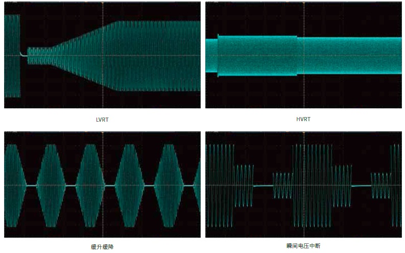 低电压穿越就是当电网故障或扰动引起电压跌落时,在一定电压跌落的范围内,发电系统不脱离电网而继续维持运行,甚至还可为系统提供一定无功以帮助系统恢复电压的能力。IT7900P 系列可以编辑低电压穿越的测试条件,配合快速的响应速度可完全符合LVRT 测试要求。同时,IT7900P系列具备任意波形功能,搭配LIST功能可以通过面板或程控软件编辑仿真各种电网扰动波形,例如瞬间掉电,突波及电压缓升缓降等。