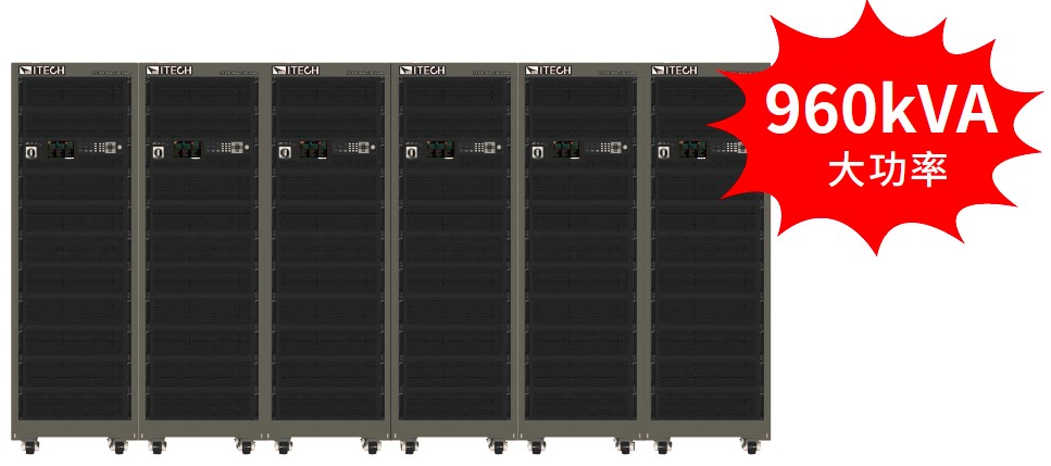 当用户有更大功率需求时,可以使用IT7800的主从并联功能,提高输出电流、功率能力。IT7800系列单个机柜功率最大可达165kVA,最多可以支持64台单机并联达960kVA,无需拆装机柜即可简易并机。