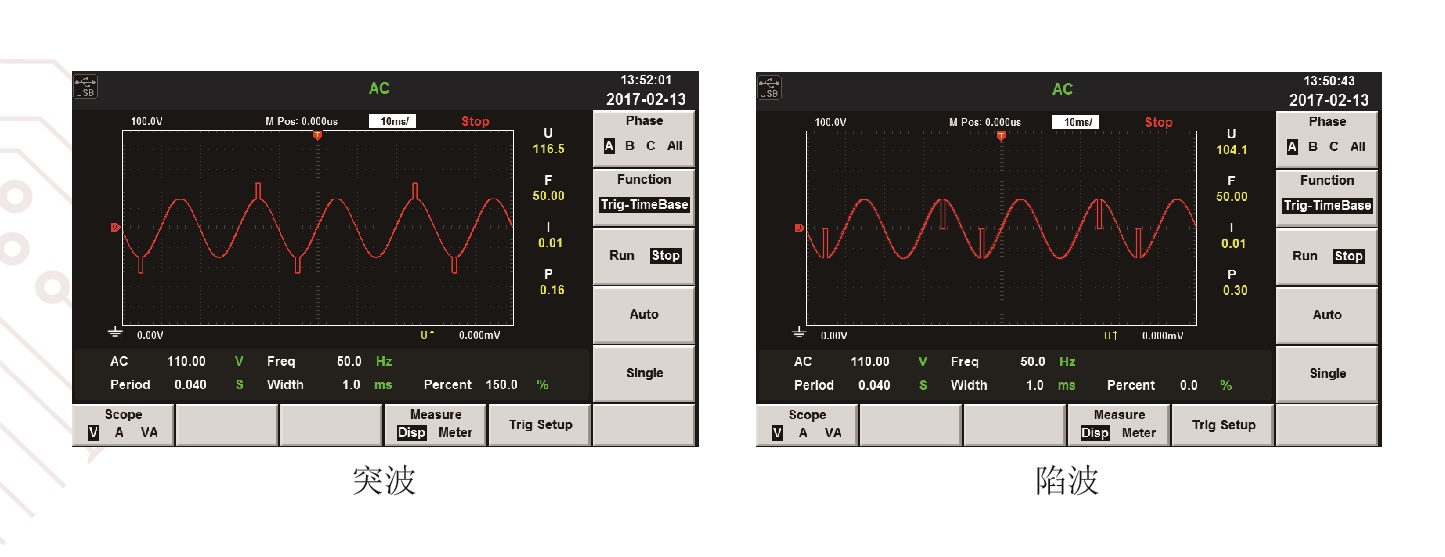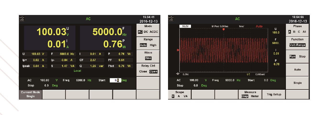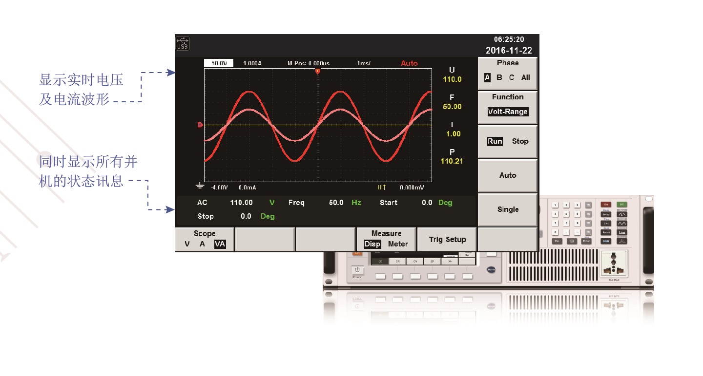 可显示单机或者并机情况下电压及电流的实时波型