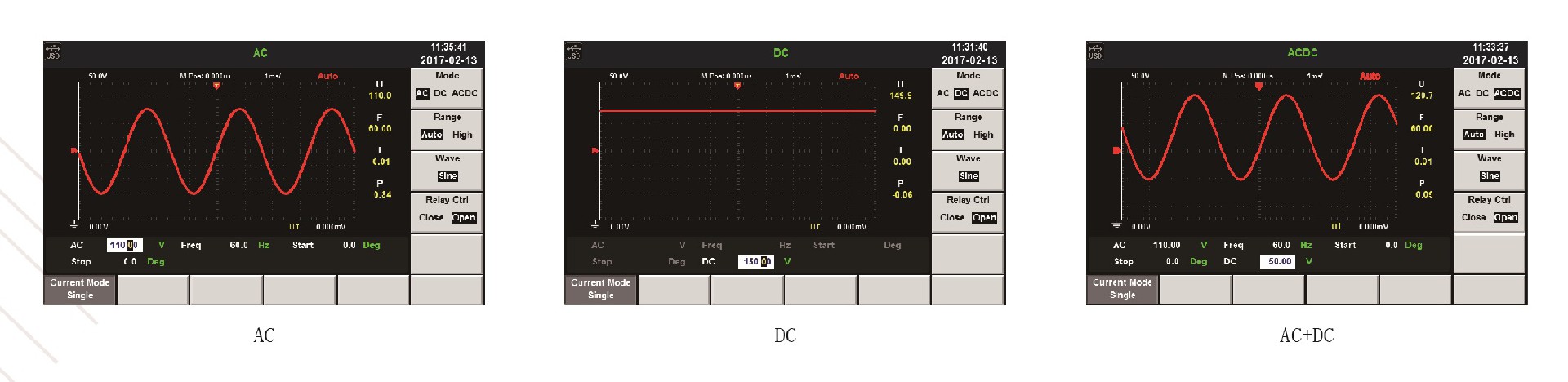 ♦ 可实现AC、DC、AC+DC各个输出模式,AC+DC模式可实现直流电压偏移模拟