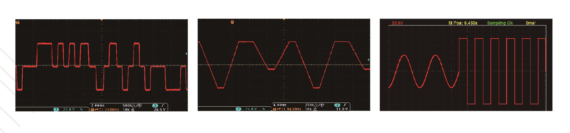 IT7600系列内建多种不同类型的波形,如三角波、正弦波、方波、锯齿波等波形,用户可以通过菜单调用并在LCD屏幕上显示出选择的波形。
