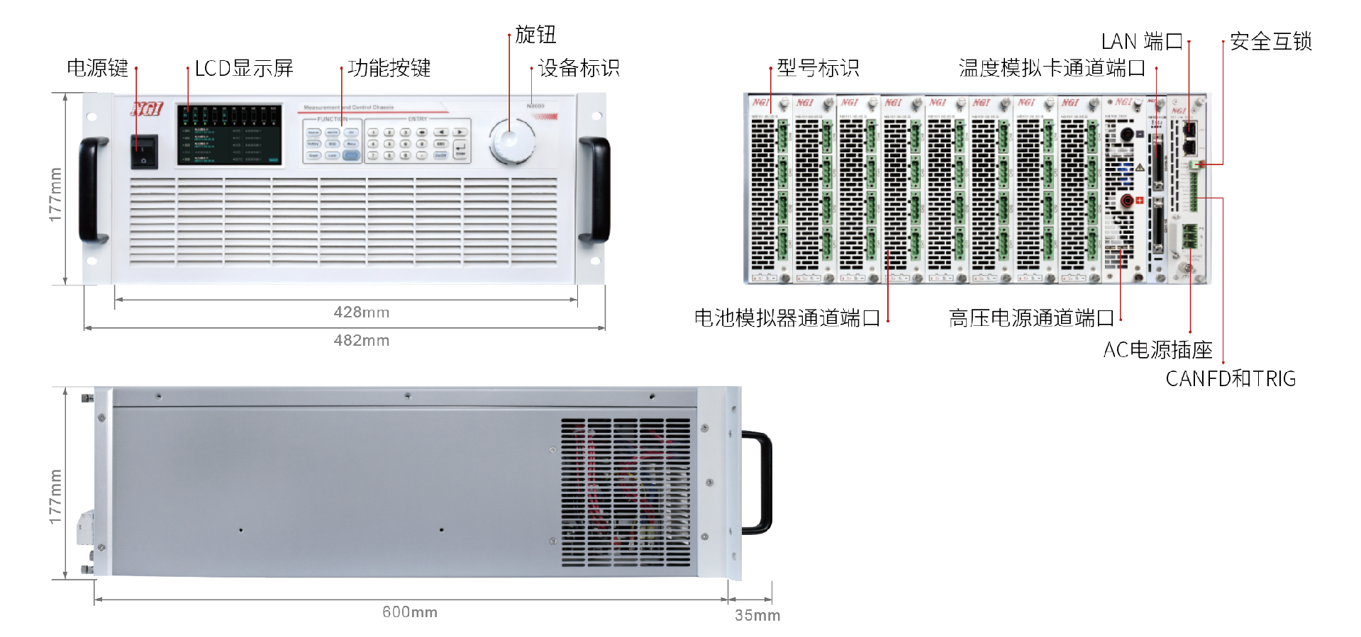 N9000系列为一款多通道模块化测控平台,支持多种测试测量卡,标准19英寸4U机箱可集成32通道单体电芯模拟+32通道电池故障模拟+36通道温度模拟+1通道总压模拟,有效节省用户空间。同时,电池模拟卡单卡4通道,温度模拟卡单卡12/24/36通道可选,高压电源卡1200V/2500V可选,产品型号丰富,用户可根据实际需求进行模块化选型,且方便后续拓展。