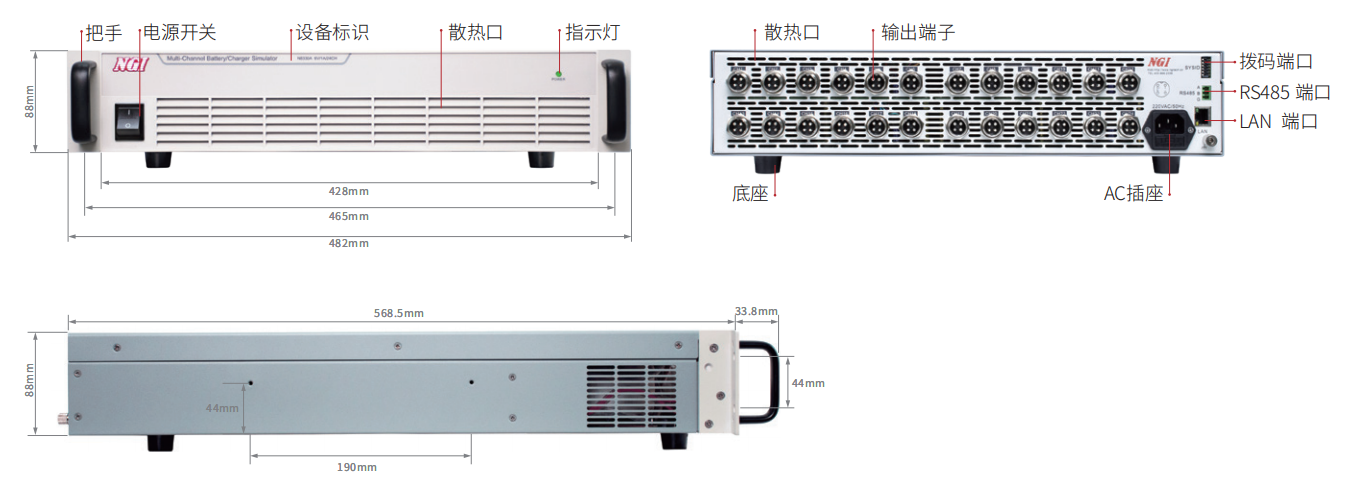 N8330系列采用标准19寸2U机箱,单机容纳多达24CH,通道间相互隔离,一台设备可以同时测试24个工位,极大减少用户测试过程中设备的使用量,提高测试效率。