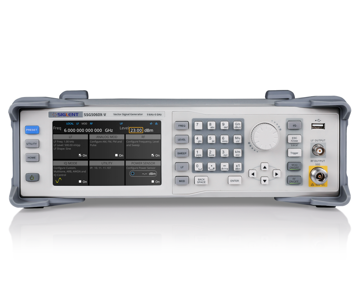 SSG5000X/X-V系列是鼎阳科技针对数字调制信号测试推出的高端型号,频率覆盖9 kHz至6 GHz,支持IQ调制,可生成包括5G NR、WLAN在内的多种数字调制信号。其最大输出功率高达+26 dBm,相位噪声低至-120 dBc/Hz,确保信号质量。5英寸电容触摸屏设计,操作便捷,标配多种通信接口,满足多样化测试需求。